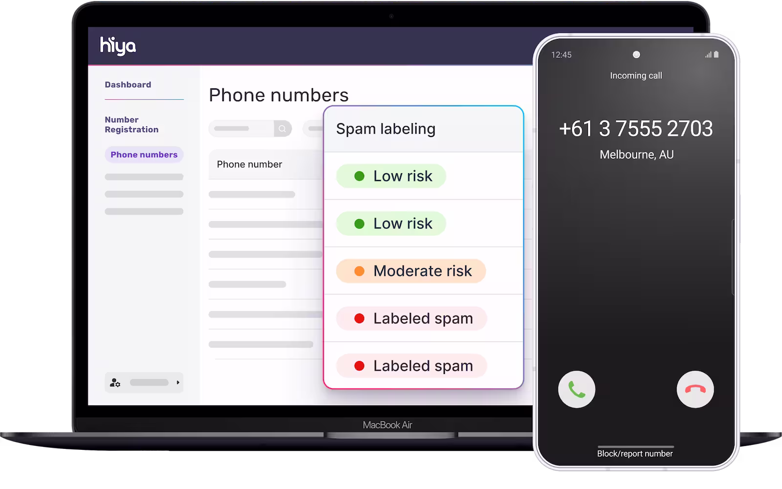 Register your numbers and get transparent insights into how they’re labelled. Hiya’s free Caller Reputation shows your current spam status and gives you a clear reputation report card based on key factors that shape customer trust — so you know exactly where you stand and how to improve.